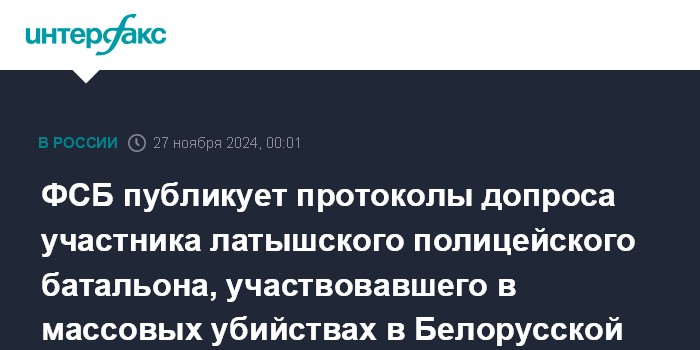 ФСБ публикует протоколы допроса участника латышского полицейского батальона, участвовавшего в массовых убийствах в Белорусской ССР в годы войны