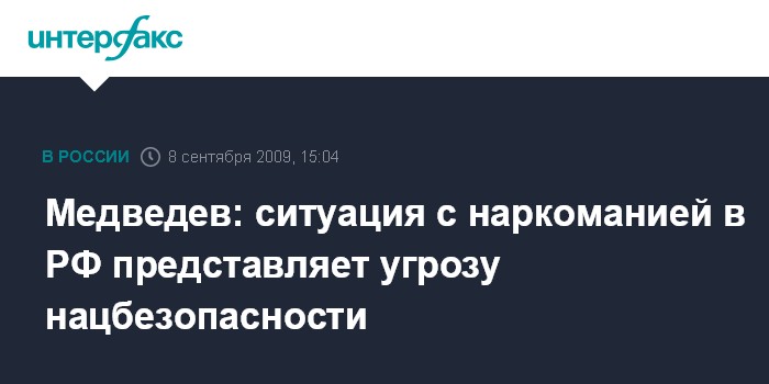 Медведев: ситуация с наркоманией в РФ представляет угрозу нацбезопасности