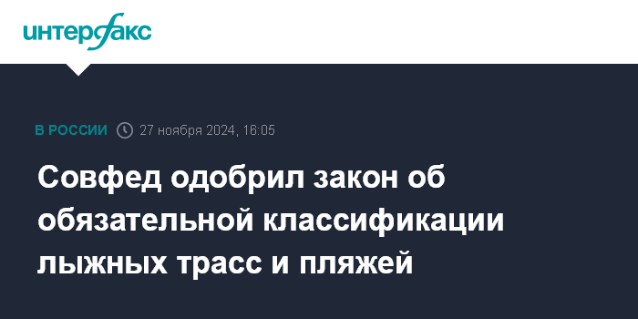 Совфед одобрил закон об обязательной классификации лыжных трасс и пляжей