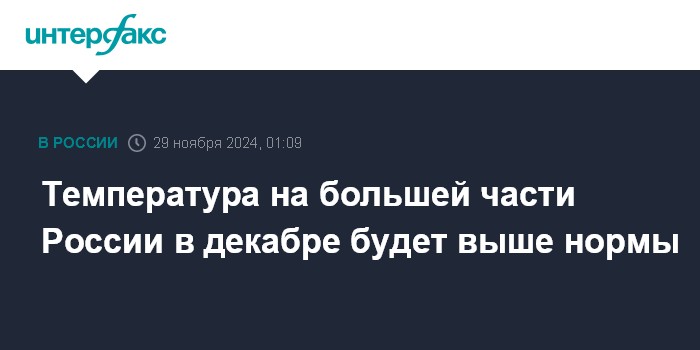 Температура на большей части России в декабре будет выше нормы