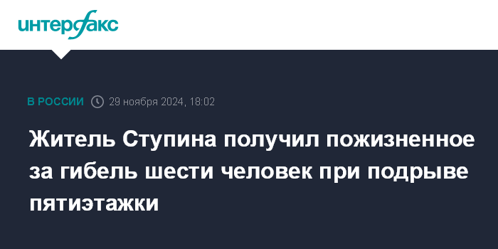 Житель Ступина получил пожизненное за гибель шести человек при подрыве пятиэтажки