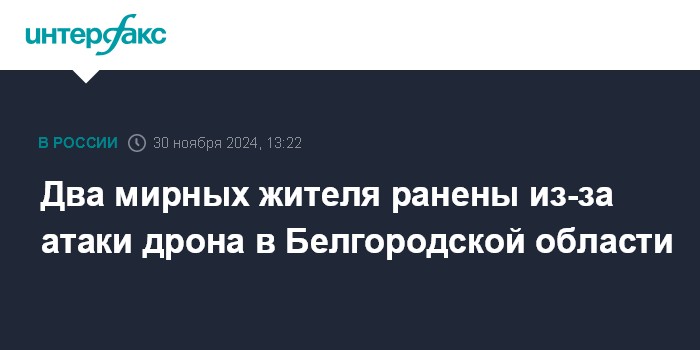 Москва. 30 ноября. INTERFAX.RU - Губернатор Белгородской области Вячеслав Гладков сообщил об атаке беспилотника ВСУ в Борисовском районе, в результате чего пострадали два человека.