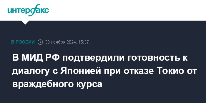 В МИД РФ подтвердили готовность к диалогу с Японией при отказе Токио от враждебного курса