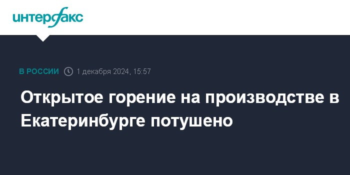 Открытое горение на производстве в Екатеринбурге потушено