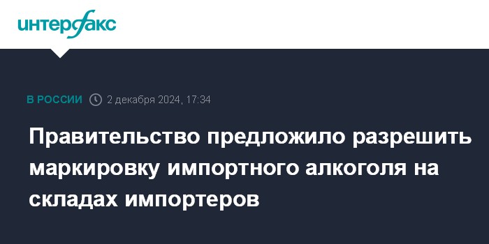 Москва. 2 декабря. INTERFAX.RU - Правительство предложило разрешить маркировать импортный алкоголь на таможенных складах импортеров. Для этого они должны иметь лицензию на хранение продукции.