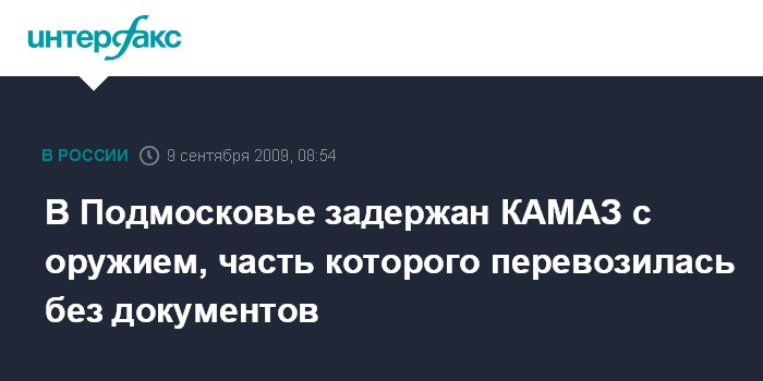 Москва. 9 сентября. INTERFAX.RU - В Московской области на 108 км автотрассы "Россия" сотрудники правоохранительных органов задержали автомашину "КАМАЗ", в прицепе которой было обнаружено более 2,5 тыс. единиц огнестрельного оружия, из них 114 перевозилось без документов, сообщил в среду "Интерфаксу" источник в правоохранительных органах.