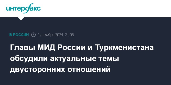 Главы МИД России и Туркменистана обсудили актуальные темы двусторонних отношений