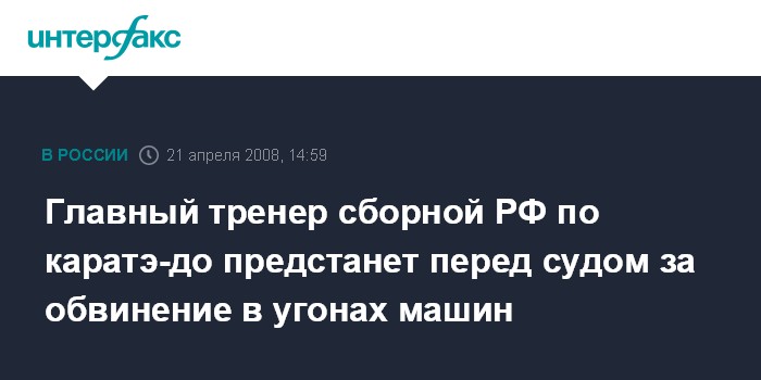 Главный тренер сборной РФ по каратэ-до предстанет перед судом за обвинение в угонах машин