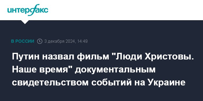 Путин назвал фильм "Люди Христовы. Наше время" документальным свидетельством событий на Украине