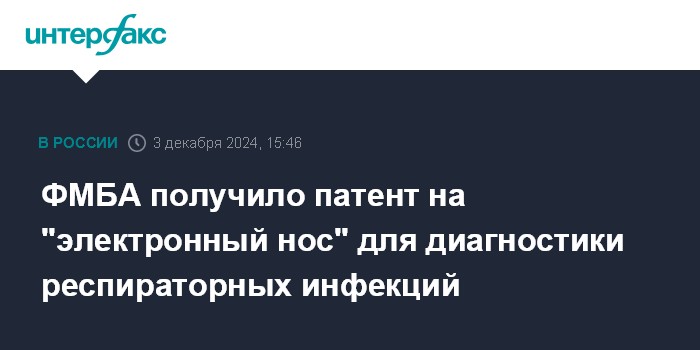 ФМБА получило патент на "электронный нос" для диагностики респираторных инфекций