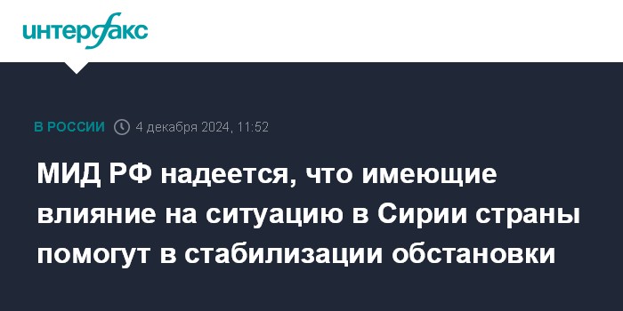 МИД РФ надеется, что имеющие влияние на ситуацию в Сирии страны помогут в стабилизации обстановки