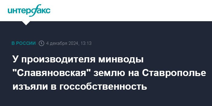 У производителя минводы "Славяновская" землю на Ставрополье изъяли в госсобственность