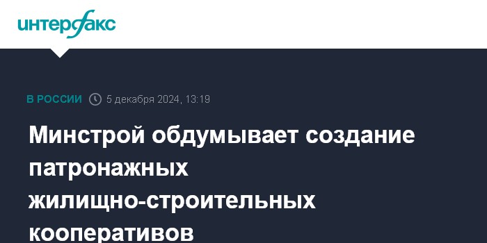 Минстрой обдумывает создание патронажных жилищно-строительных кооперативов