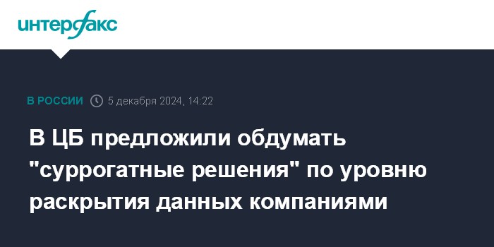 В ЦБ предложили обдумать "суррогатные решения" по уровню раскрытия данных компаниями