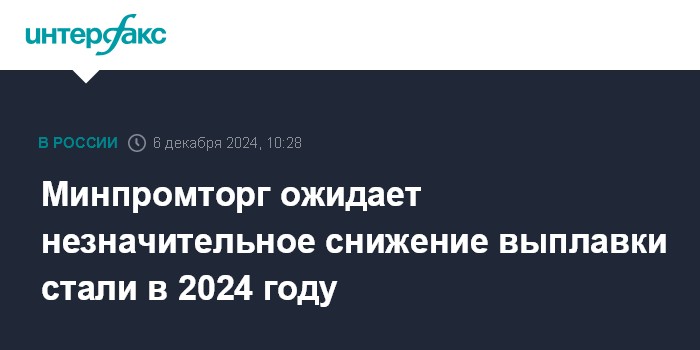 В ноябре Алиханов заявлял, что Минпромторг прогнозирует выплавку стали в стране в 2024 году на уровне 73 млн тонн, при этом ведомство обращало внимание на риски, связанные с охлаждением строительного сегмента и повышением ставок ипотечного кредитования.