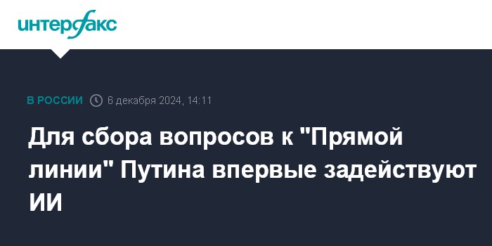 Для сбора вопросов к "Прямой линии" Путина впервые задействуют ИИ