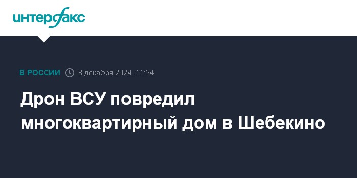 Москва. 8 декабря. INTERFAX.RU - Губернатор Белгородской области Вячеслав Гладков сообщил об ударе украинского беспилотника по многоквартирному дому в Шебекино.