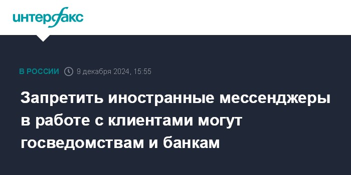 По словам источника, этим документом предлагается ввести запрет на использование принадлежащих иностранным юрлицам или гражданам сервисов обмена мгновенными сообщениями для передачи, приема, доставки и (или) получения голосовой информации, текстовых сообщений, изображений, звуков, видео- или иных электронных сообщений. Эту норму предлагается распространить на сотрудников маркетплейсов и сервисов доставки (при их взаимодействии с физическими лицами - пользователями сервисов - ИФ), на сотрудников кредитных организаций, на служащих Банка России, работников операторов связи, гражданских служащих госслужбы и госслужащих регионов.