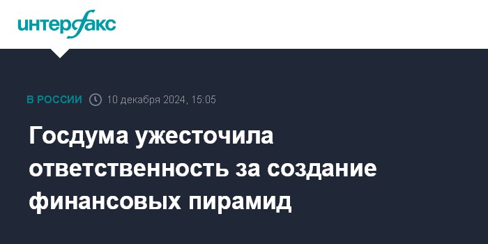 Госдума ужесточила ответственность за создание финансовых пирамид