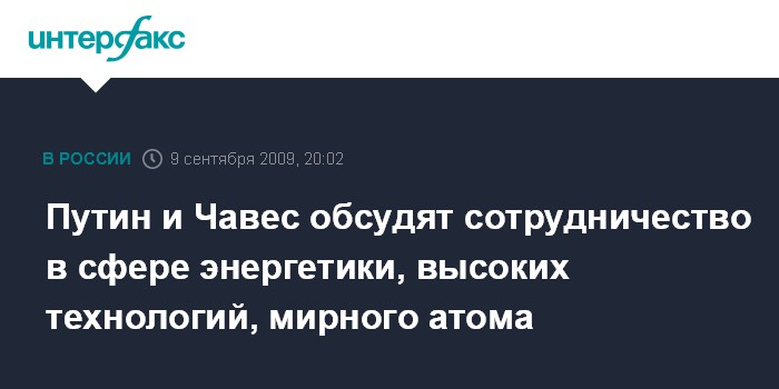 Путин и Чавес обсудят сотрудничество в сфере энергетики, высоких технологий, мирного атома