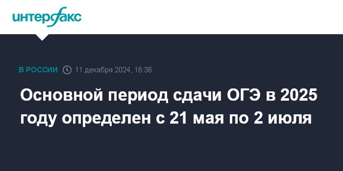 Основной период сдачи ОГЭ в 2025 году определен с 21 мая по 2 июля