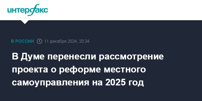В Думе перенесли рассмотрение проекта о реформе местного самоуправления на 2025 год