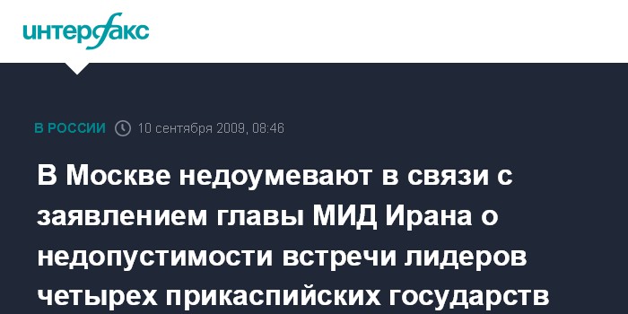 Москва. 10 сентября. INTERFAX.RU - В Москве считают надуманными высказывания иранских представителей, заявивших о неправомерности отдельной встречи глав четырех прикаспийских государств - России, Казахстана, Азербайджана и Туркмении.