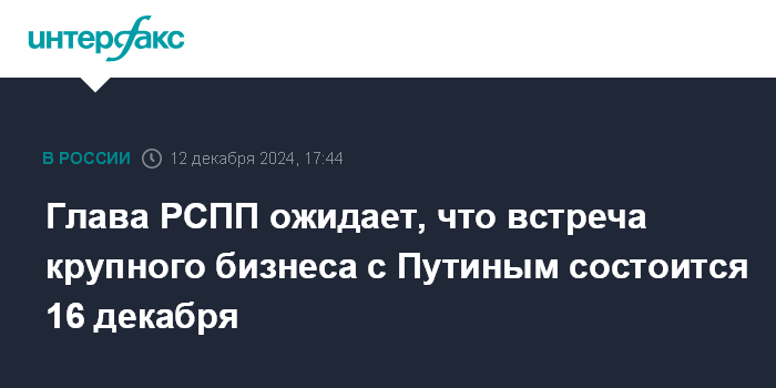 Глава РСПП ожидает, что встреча крупного бизнеса с Путиным состоится 16 декабря