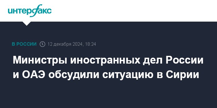 В нем также отмечается, что главы МИД РФ И ОАЭ "условились работать с представителями всех сирийских сил и ответственными игроками в пользу скорейшей реализации данной инициативы".