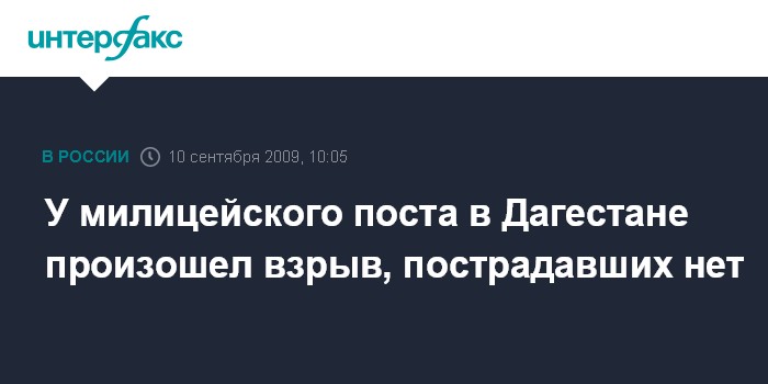 Москва. 10 сентября. INTERFAX.RU – В Кизилюртовском районе Дагестана недалеко от поста милиции сработало взрывное устройство, сообщил "Интерфаксу" начальник пресс-службы МВД Дагестана Марк Толчинский.