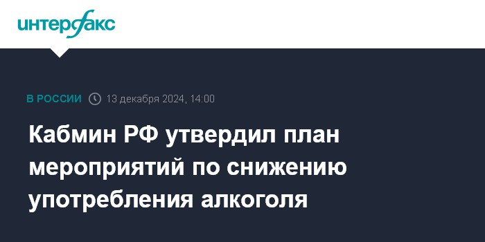 Кабмин РФ утвердил план мероприятий по снижению употребления алкоголя