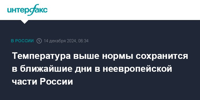 Москва. 14 декабря. INTERFAX.RU - В регионах азиатской части страны прогнозируется температура выше нормы на 8-18 градусов, сообщил "Интерфаксу" научный руководитель Гидрометцентра России Роман Вильфанд.