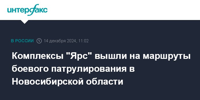 Москва. 14 декабря. INTERFAX.RU - В Новосибирском ракетном соединении на маршруты боевого патрулирования выведены автономные пусковые установки подвижных грунтовых ракетных комплексов "Ярс", сообщили в Минобороны РФ в субботу.