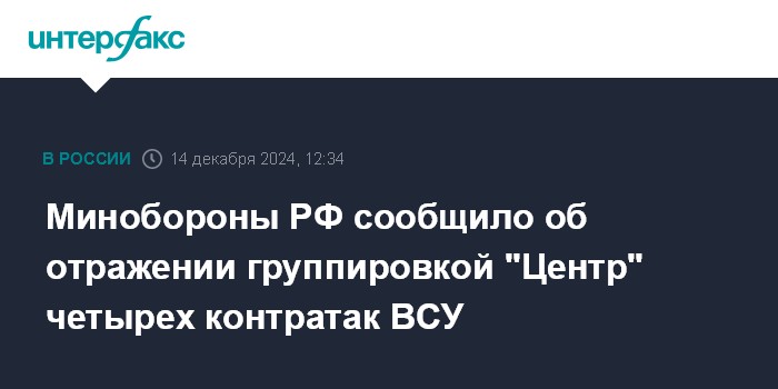 Москва. 14 декабря. INTERFAX.RU - Подразделения группировки войск "Восток" продолжают продвижение в глубину обороны вооруженных сил Украины (ВСУ), группировка "Центр" отразила четыре украинские контратаки, заявили в Минобороны РФ в субботу.