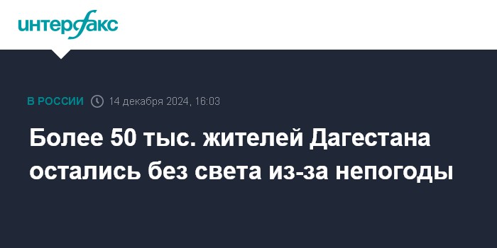 Более 50 тыс. жителей Дагестана остались без света из-за непогоды