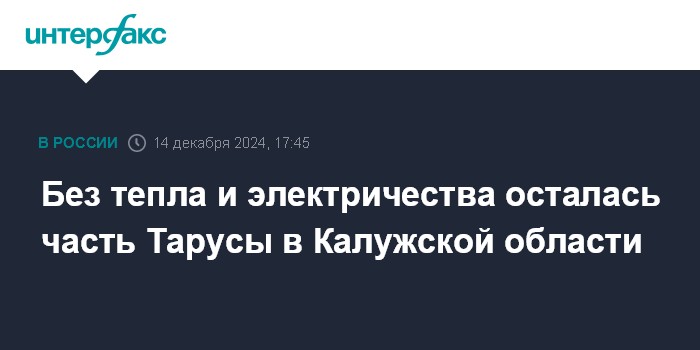 Москва. 14 декабря. INTERFAX.RU - Значительная часть Тарусы (город в Калужской области) осталась без электроснабжения из-за аварийного отключения распределительной подстанции на улице Пролетарской, сообщил глава администрации Тарусского района Михаил Голубев на своей странице Вконтакте.