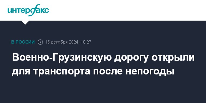 "В связи с расчисткой дорожного полотна на территории Грузии, возможностью обеспечения безопасного проезда автотранспортных средств (...) разрешено движение всех видов автотранспортных средств на участке город Владикавказ - населенный пункт Ларс - в обоих направлениях с 9:10 мск 15 декабря", - говорится в сообщении.
