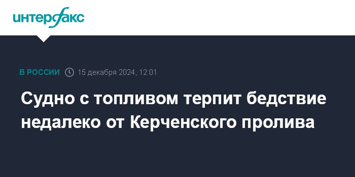"Утром поступило сообщение, что в 8 км перед Керченским проливом терпит бедствие судно с мазутом "Волгонефть 212" с припиской в порту Санкт-Петербурга", - сказал собеседник агентства.
