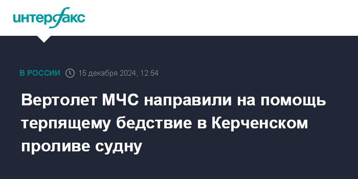 Москва. 15 декабря. INTERFAX.RU - Вертолет Ми-8 направили на помощь экипажу танкера, терпящему бедствие в Керченском проливе, сообщили в пресс-службе главка МЧС РФ по Крыму в воскресенье.