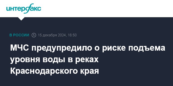"В связи с ожидаемыми осадками в период с 15 по 18 декабря на реках, малых реках и водотоках бассейна реки Кубань юго-восточной территории Краснодарского края (Апшеронский район), юго-западных притоках р. Кубань (г. Горячий Ключ, Северский район), а также на реках территории Черноморского побережья от Анапы до Магри (Туапсинский район) ожидаются подъемы уровней воды до неблагоприятных отметок и выше", - говорится в сообщении.