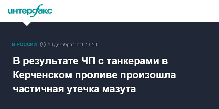 Москва. 16 декабря. INTERFAX.RU - Утечка нефтепродуктов в результате крушения танкеров в Керченском проливе произошла частично, сообщает пресс-служба правительства.