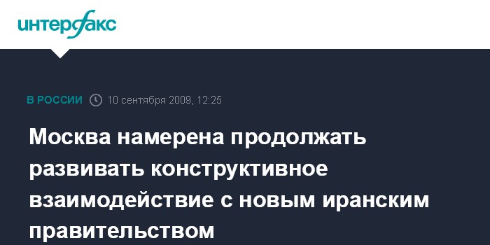 Москва. 10 сентября. INTERFAX.RU - Москва продолжит конструктивное сотрудничество с новым правительством Ирана.