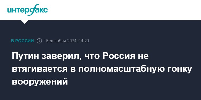 Путин заверил, что Россия не втягивается в полномасштабную гонку вооружений