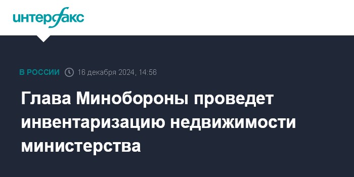 Москва. 16 декабря. INTERFAX.RU - Министр обороны Андрей Белоусов сообщил о планах провести инвентаризацию и создать систему учета объектов недвижимости, находящихся в составе имущественного комплекса ведомства. Он заявил об этом на расширенной коллегии министерства.