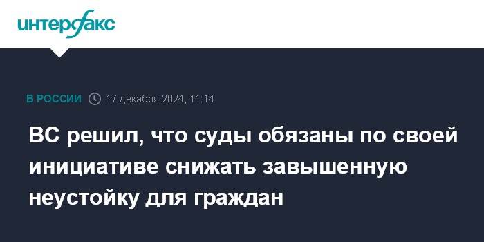 ВС решил, что суды обязаны по своей инициативе снижать завышенную неустойку для граждан