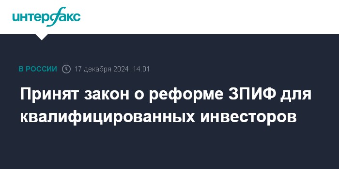 Принят закон о реформе ЗПИФ для квалифицированных инвесторов