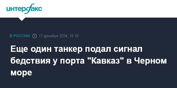 Москва. 17 декабря. INTERFAX.RU - Третий танкер подал сигнал бедствия у порта "Кавказ" в Черном море, сообщили "Интерфаксу" в экстренных службах региона.