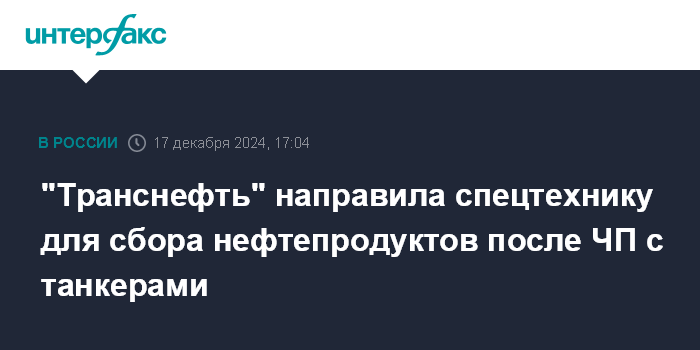"Транснефть" направила спецтехнику для сбора нефтепродуктов после ЧП с танкерами