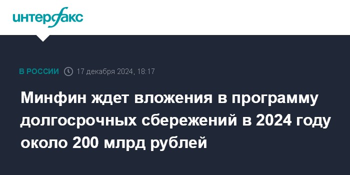 Минфин ждет вложения в программу долгосрочных сбережений в 2024 году около 200 млрд рублей