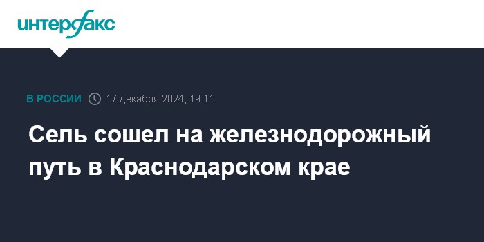 Москва. 17 декабря. INTERFAX.RU - Движение по участку железнодорожного пути приостановлено в Туапсинском районе Краснодарского края из-за сошедшего во вторник селя, сообщила пресс-служба Северо-Кавказской железной дороги (СКЖД, филиал ОАО "РЖД").